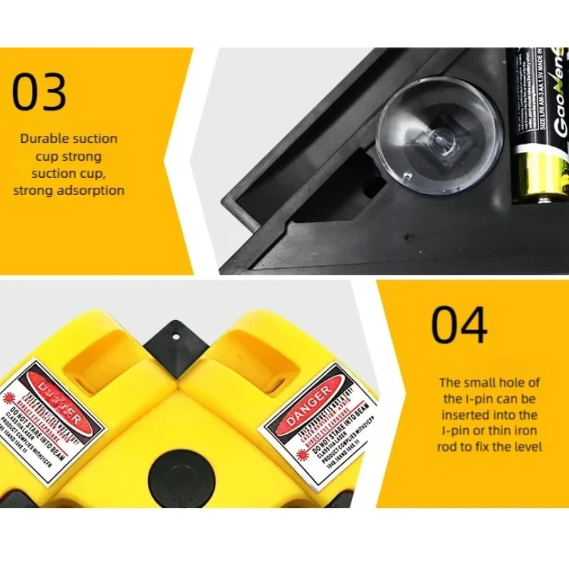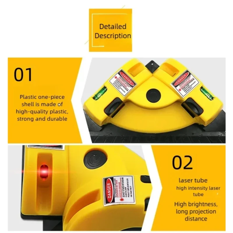 This 90-degree infrared laser level is designed for precise vertical and horizontal alignment during floor tiling and construction work. It projects clear, accurate laser lines to help ensure perfect right-angle positioning and straight layouts. Ideal for tile installation, flooring, wall alignment, and renovation projects, it improves accuracy and reduces measurement errors. The infrared laser technology provides stable and highly visible lines for dependable results. Compact and easy to position, it fits seamlessly into tight or detailed workspaces. Simple operation makes it suitable for both professionals and DIY users. Durable construction supports consistent performance on job sites and home projects. This laser level is an essential tool for achieving clean, accurate, and professional-quality results.