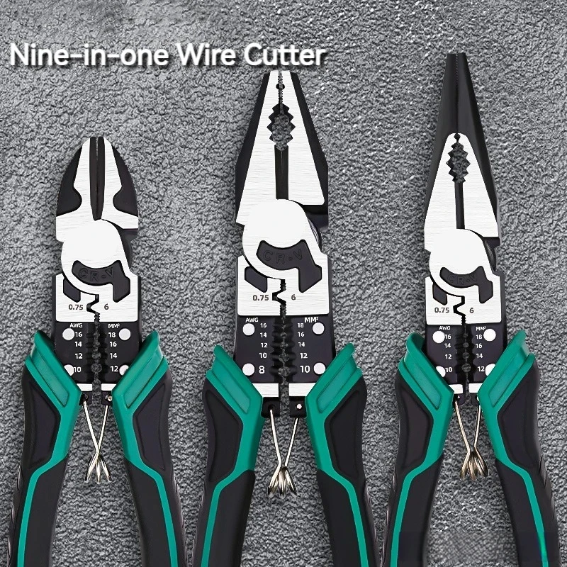 These 9-inch heavy duty multifunction pliers are designed to meet the demanding needs of electricians and industrial users. Crafted from durable alloy steel, they combine wire cutting, gripping, bending, and precision needle nose functions in one reliable tool. The labor-saving design improves leverage, allowing efficient cutting and handling with less effort. Strong cutting edges deliver clean results on wires and cables used in electrical work. The long, narrow nose enables access to tight or confined spaces with precision and control. Built for durability, they withstand frequent use in professional environments. The ergonomic handle provides a secure, comfortable grip for extended tasks. Ideal for electrical, industrial, and workshop applications, these pliers offer versatility, strength, and dependable performance.