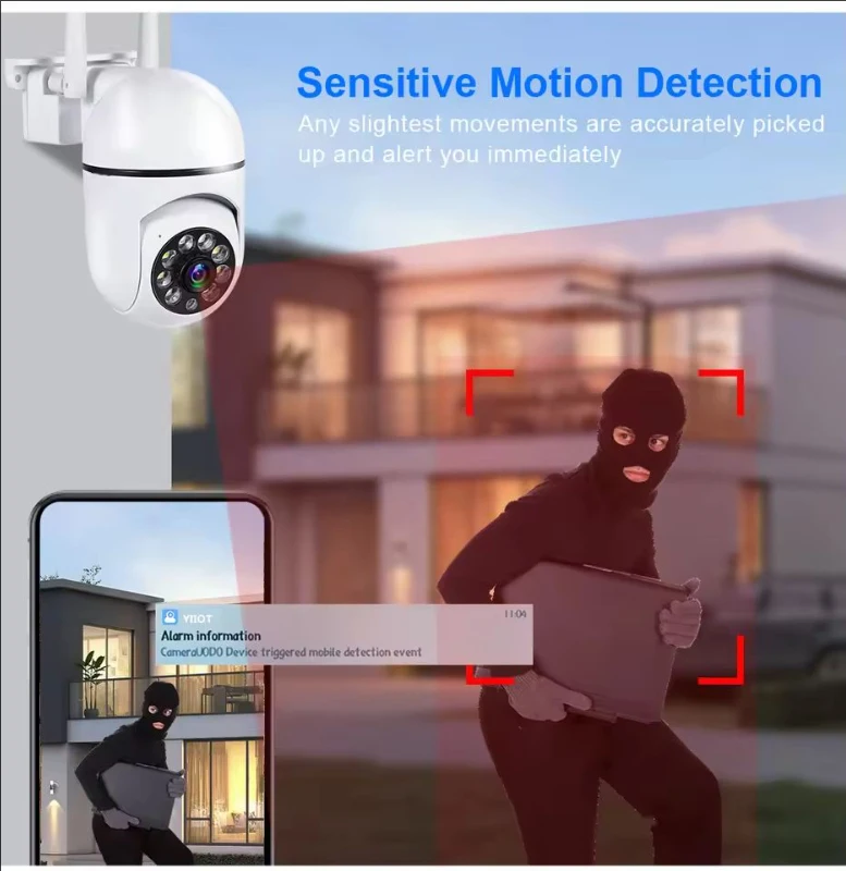This 1080P outdoor WiFi PTZ security camera delivers reliable and flexible surveillance for homes and businesses. Featuring pan, tilt, and zoom functionality, it allows wide-area coverage and precise monitoring from your mobile device. The clear high-definition video ensures detailed footage for day and night security. With 4X digital zoom, you can easily focus on important areas without sacrificing clarity. Built-in audio enables real-time listening for enhanced awareness and security control. Wireless network connectivity allows convenient remote access and live viewing anytime, anywhere. Designed for outdoor use, its durable construction performs well in various weather conditions. Ideal for property monitoring, entryways, and outdoor spaces, this camera provides dependable protection and peace of mind.